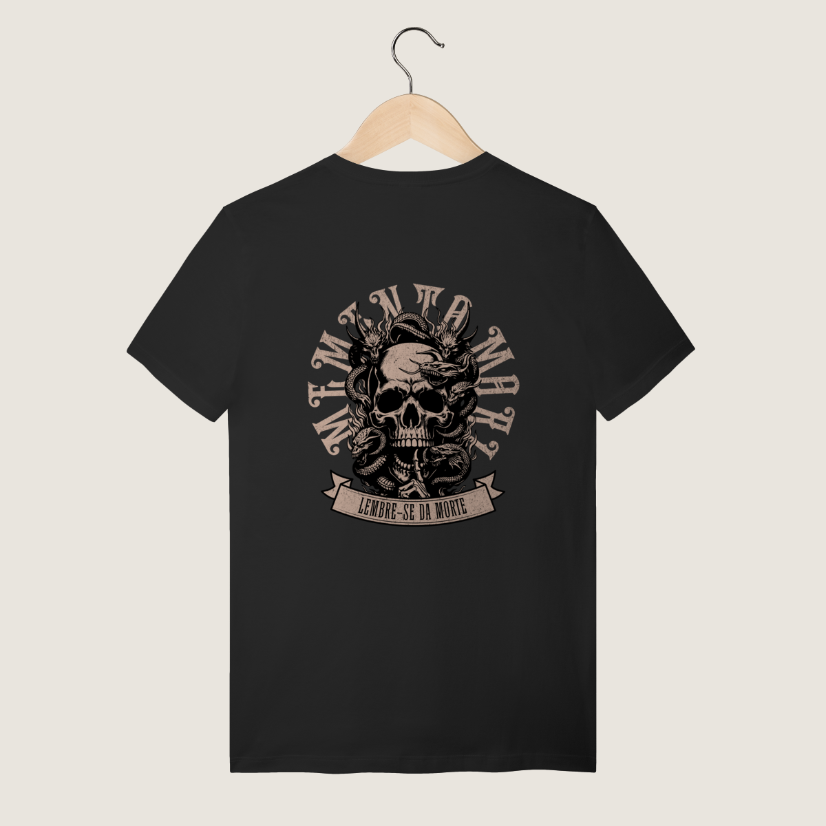Uma estampa que confronta a finitude com clareza. Um lembrete direto da impermanência e do foco no essencial. Feita para quem vive atento ao instante e ao peso do próprio destino.